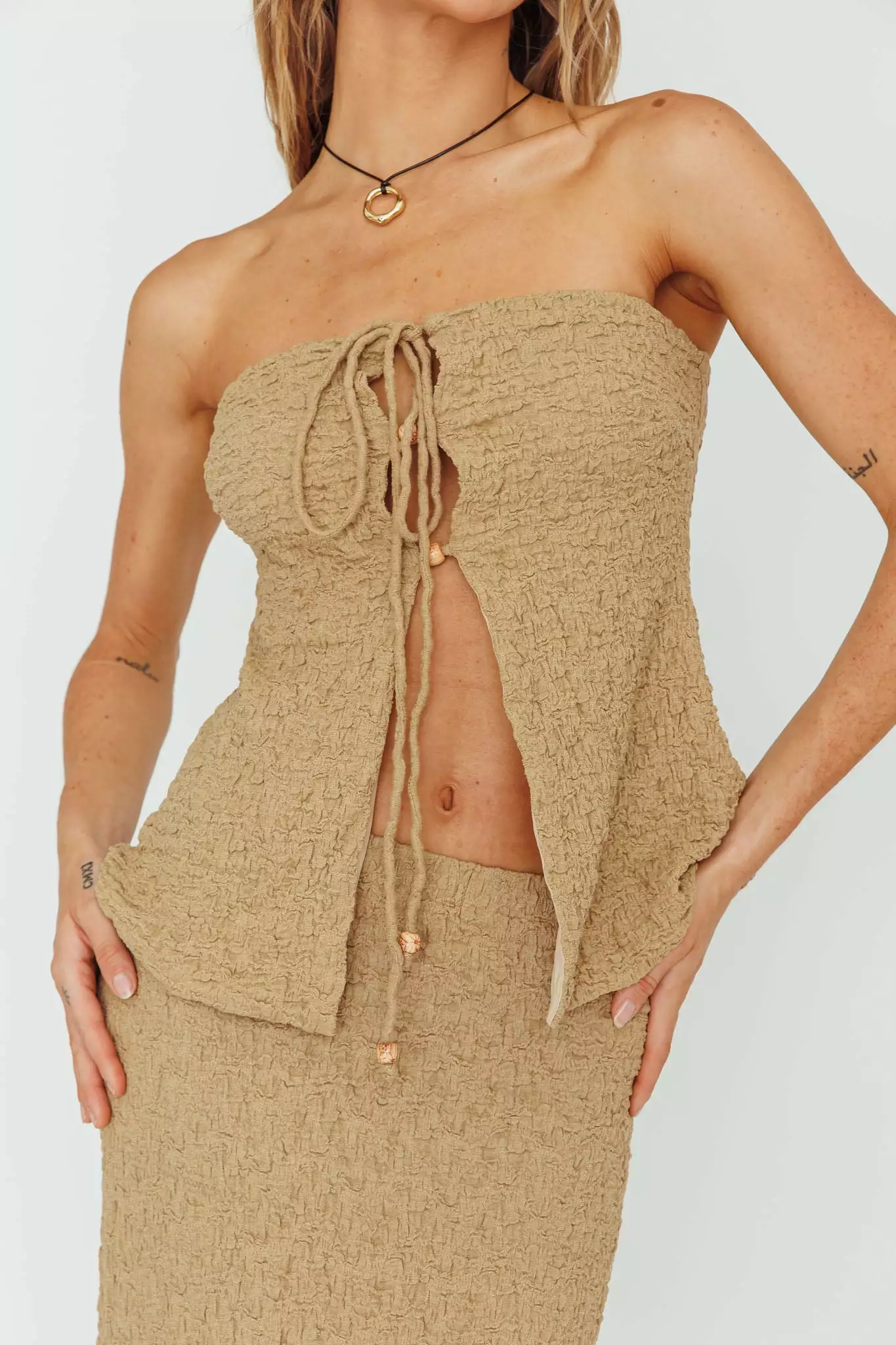 Turn heads in our gorgeous Kalei top. We are in love with its textured fabric and cute bead detail in the bust. Perfect for sunset happy hour with your besties. Team it with its matching skirt and mules for a look we are loving.