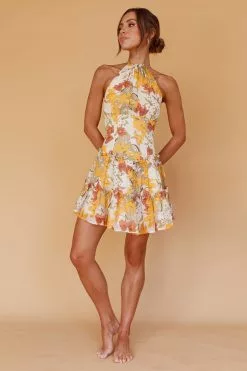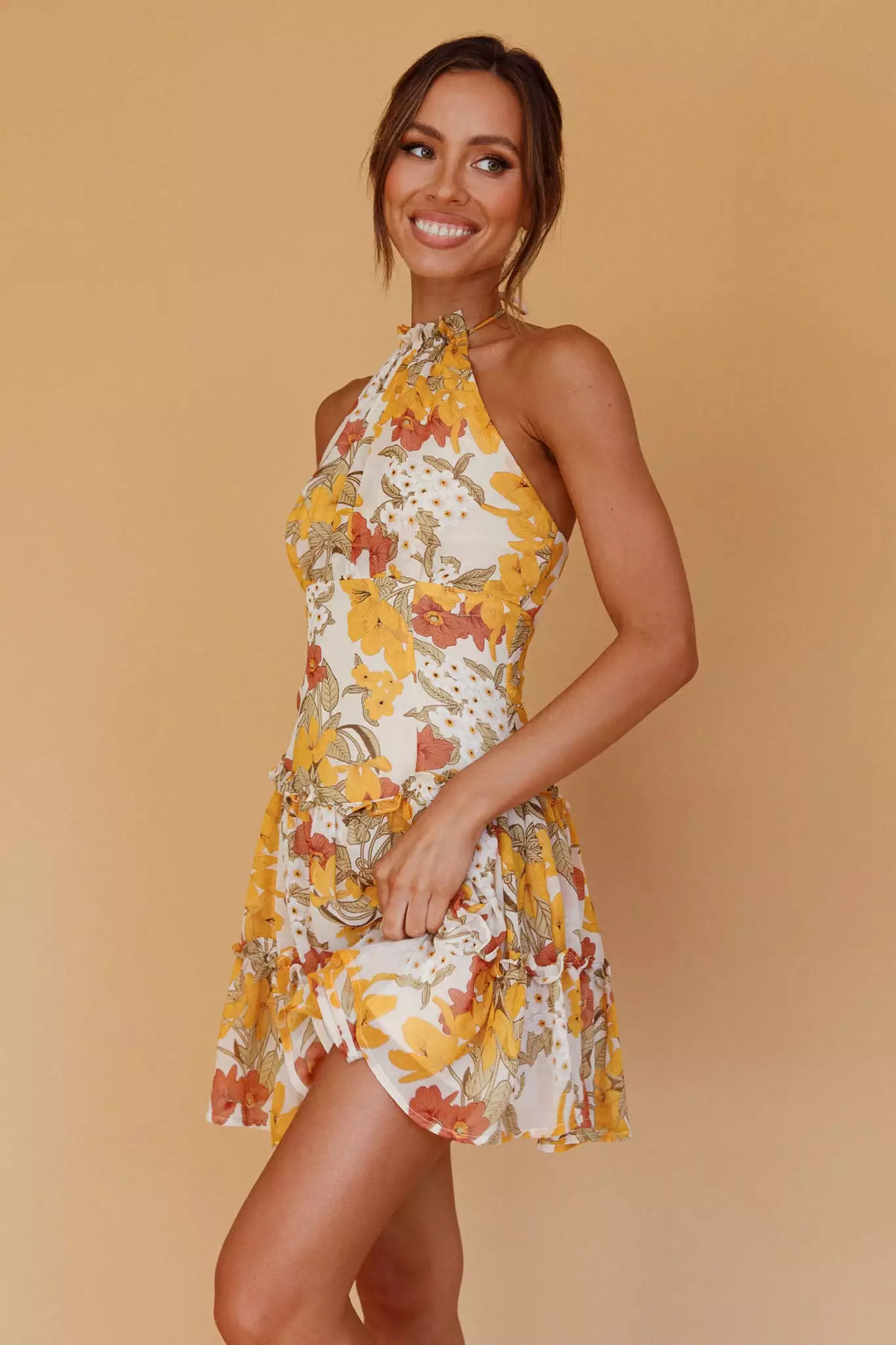 Breeze through the weekend in our pretty Nikayla mini dress. Featuring a halterneck and pretty, floral print. It’s perfect for happy hour with your girls teamed with tan mules and a tote. Super cute!