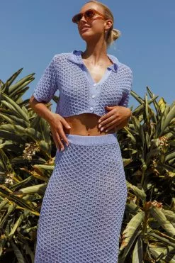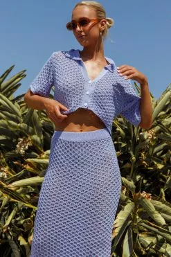 We’ve fallen head over heels for our gorgeous Summer Sunset maxi skirt. We are in love with the crochet knit fabric -a Summer must-have! Perfect for beach days with your besties. Team it with its matching crop top and tan sandals for a look we are loving.