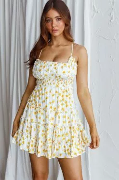 Breeze through your day in our adorable Sunshine Lovers dress. Featuring shirring under the bust and the sweetest floral print. We are loving this teamed with white tennis shoes and a basket bag for a girls’ day out.