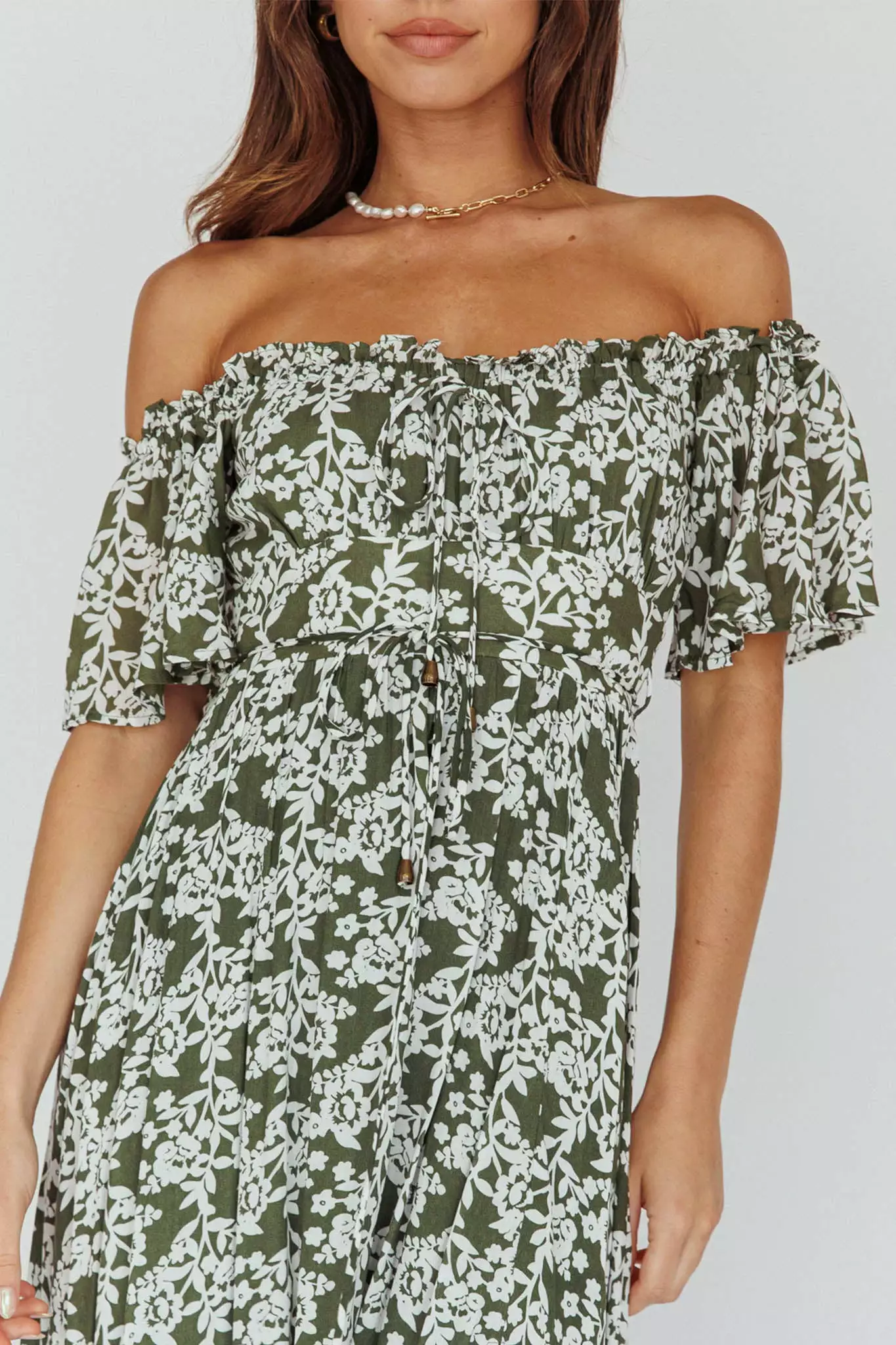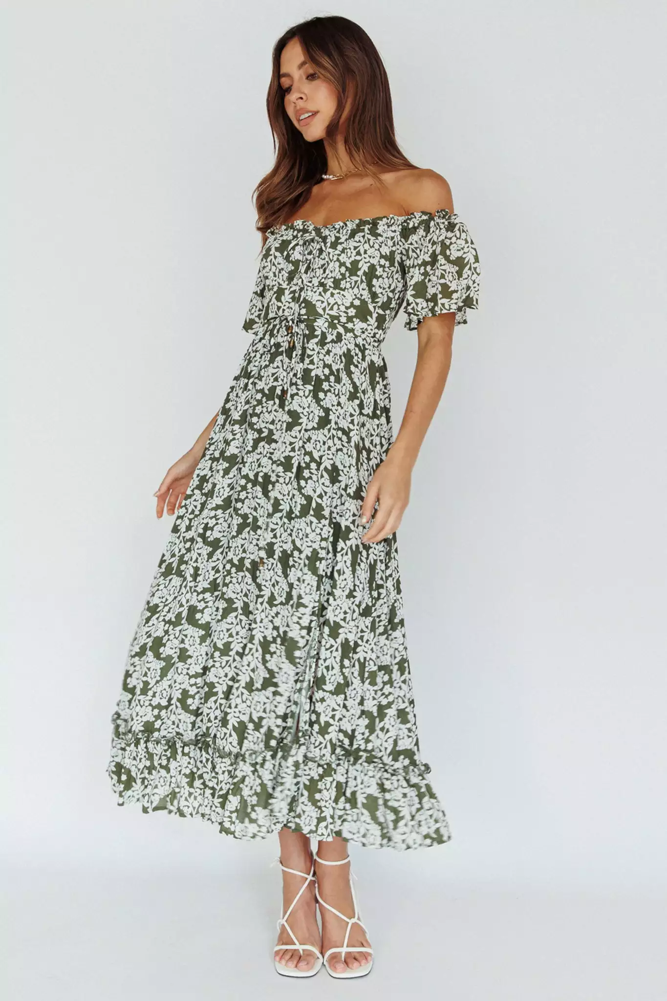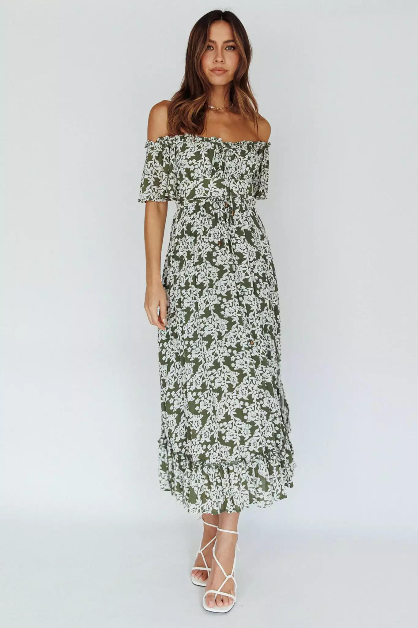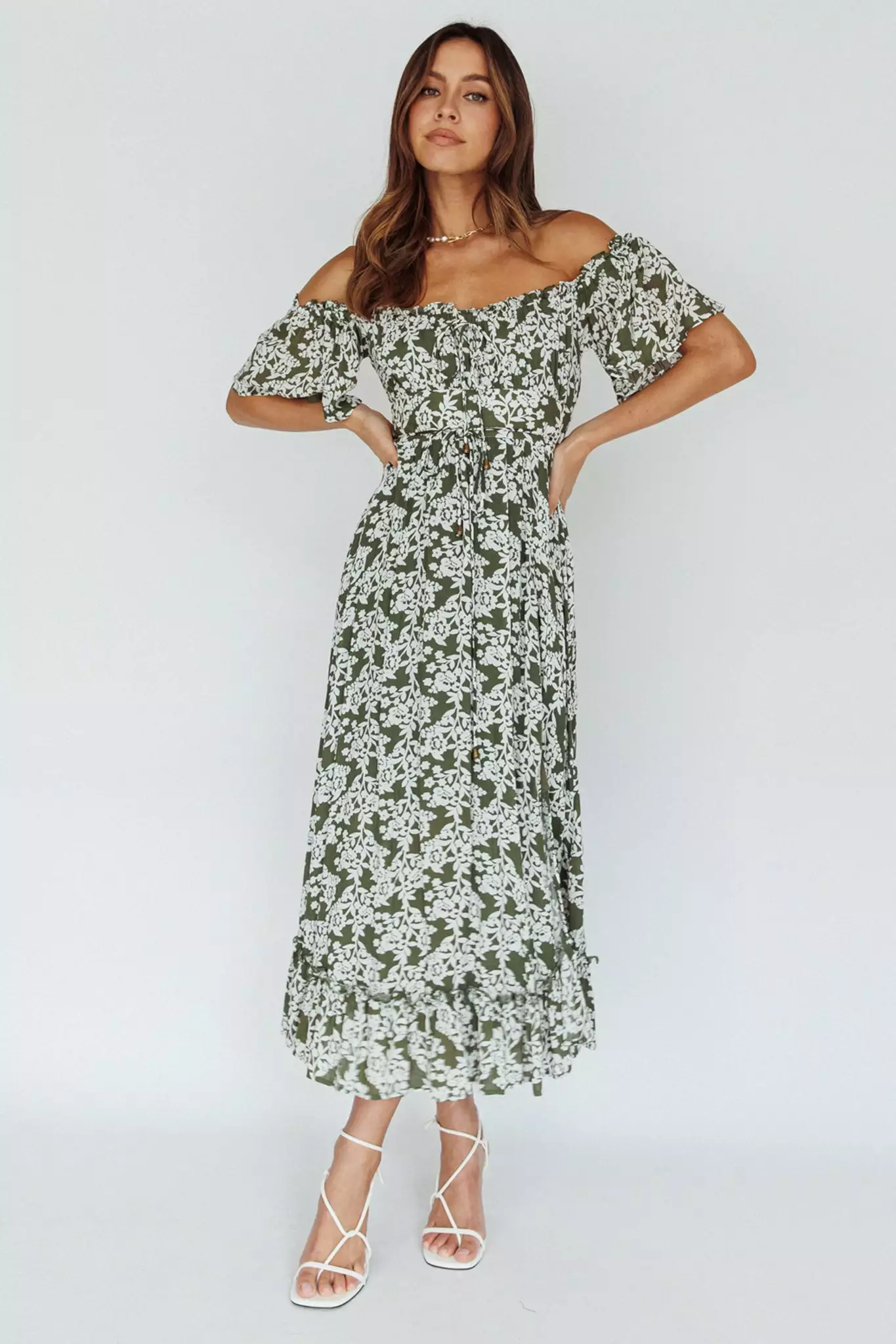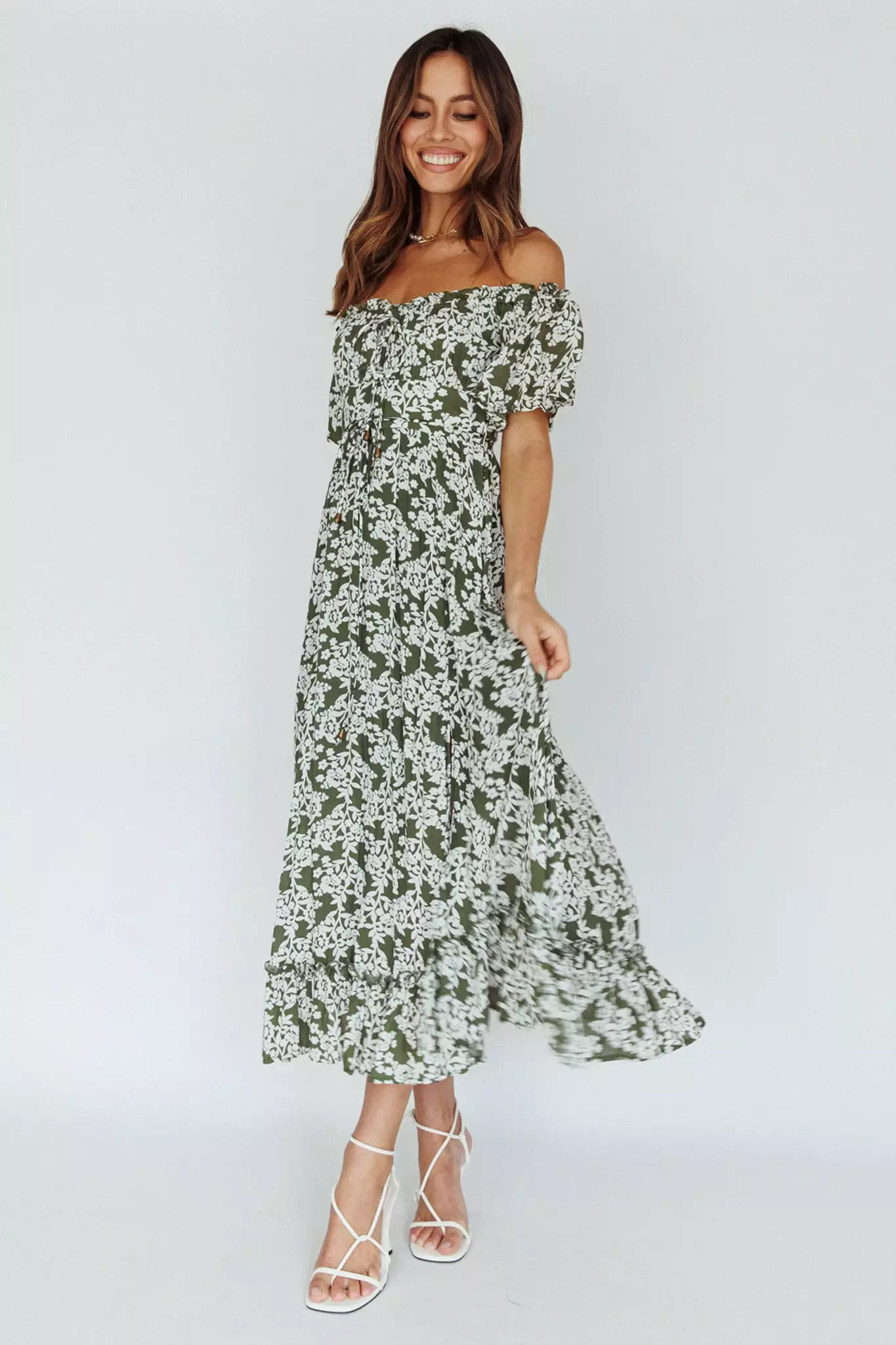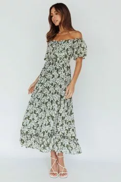 - Green floral midi dress