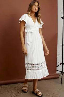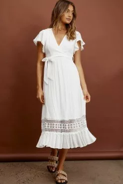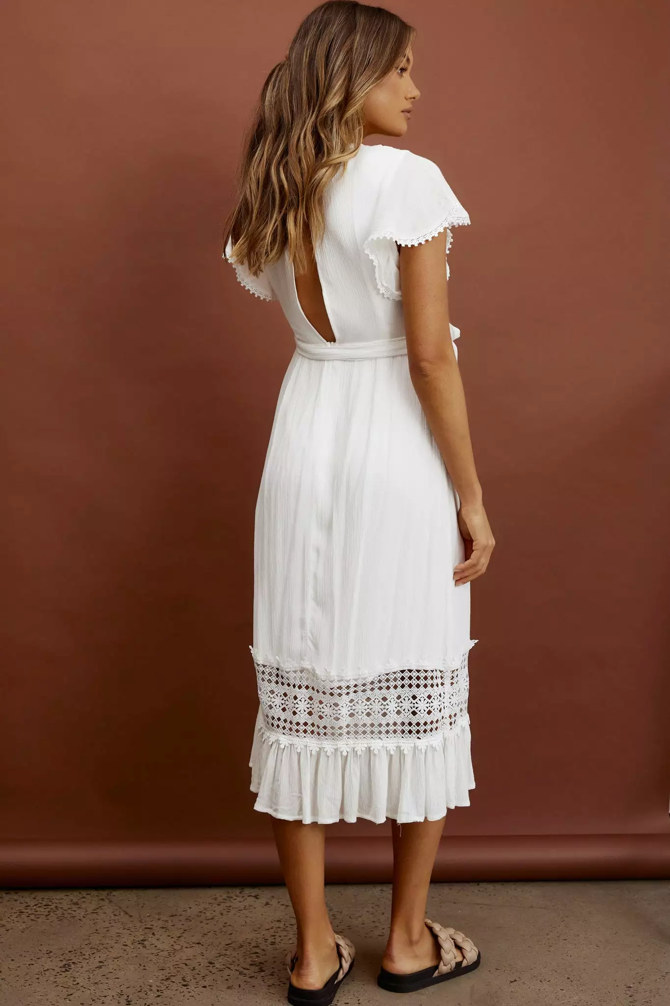 INDIKAH Zephyr Waist Tie Midi Dress White