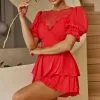 Hey there, cutie! You’ll be turning heads in our pretty Janiya romper. Featuring eyelet embroidery fabric and super cute ruffle straps and an open back. Wear it for a day out with your besties, teamed with your fave mules and a tote.
