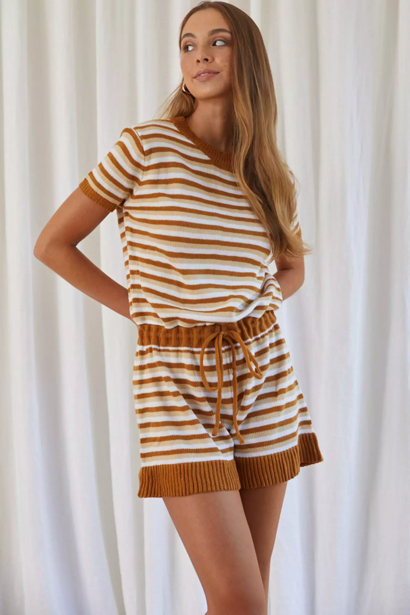 Make an entrance in our comfy but chic Johana romper. We are loving the soft knit and chic stripe. Perfect for coffee dates with your girls teamed with crisp white sneakers or dress it up with wedges and a tote for sunset happy hour.