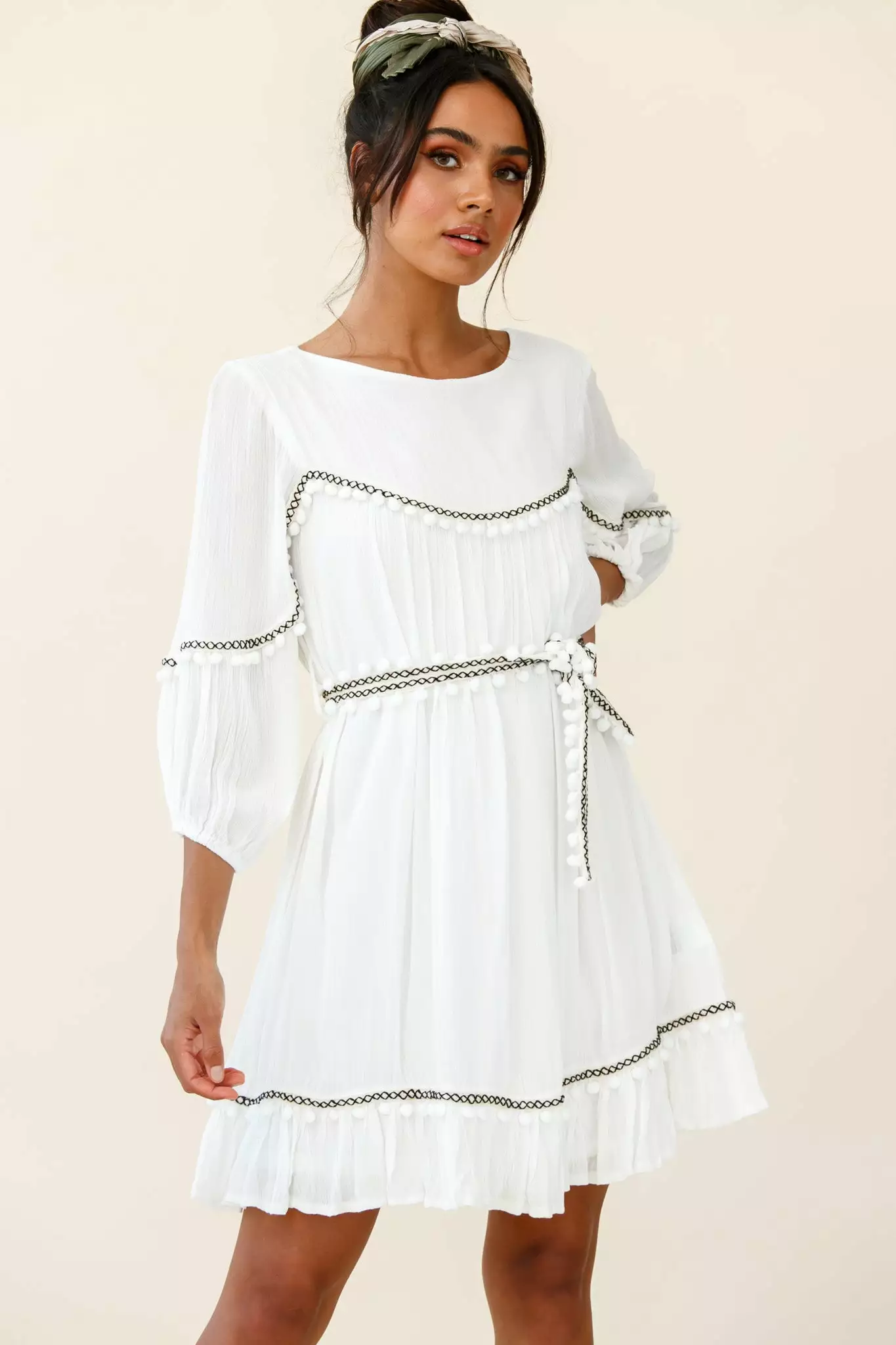 Breeze through your day in our boho-chic Marionette dress. It’s super versatile and we are loving the pom-pom trim detail. Perfect for lunch dates with your girls paired with ankle boots and a felt hat or dress it up with tan mules and some gold hoops for a chic look we are loving.