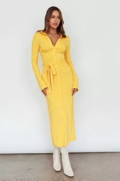 Slay your day in our chic Eastcoast midi dress. Featuring a stretch, ribbed fabric to hug your curves and a faux button placket in the front. Take it from your 9-5 to happy hour cocktails with your girls teamed with boots and a tote for a look that will turn heads.