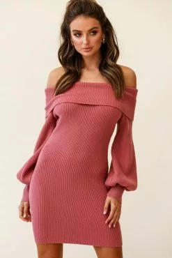 Make them stop and stare in our Runaway dress. Featuring a ribbed-knit fabric throughout, off-shoulder style and cuffed balloon sleeves. Perfect for a flirty first date teamed with boots and hoop earrings. Cute!