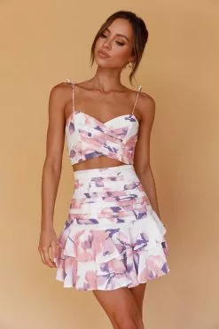 Make an entrance in our gorgeous Janene mini skirt. Featuring pintuck pleat detail and a layered ruffle hem. Perfect for a flirty date with your lover or weekend brunching with your girls. Team it with its matching top, strappy heels and a small purse for a look we are loving.