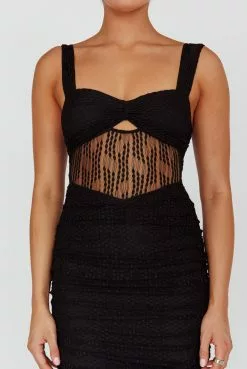 Make an entrance in our gorgeous Oliana midi dress. We are in love with its embroidered mesh overlay and ruching detail. Perfect for a romantic date night teamed with strappy heels and a clutch.