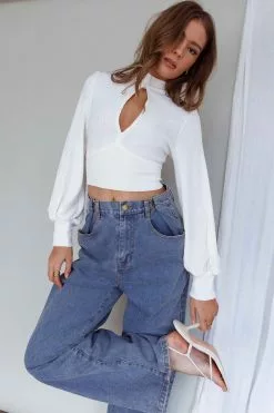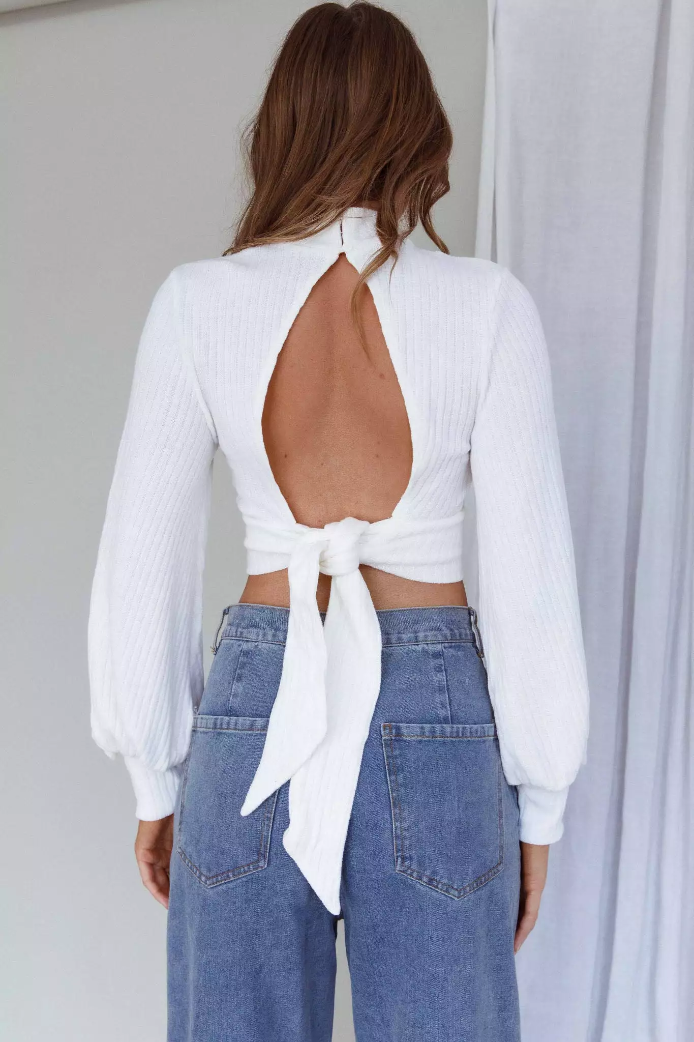 Wear this top with caution, it could get you into trouble. Our Prove It crop top features a knit fabric, keyhole cut-out in the front and an exposed back that ties at the bottom. Perfect for that sexy, new cocktail bar you’ve heard about, team it slouchy mom jeans and extra high heels.