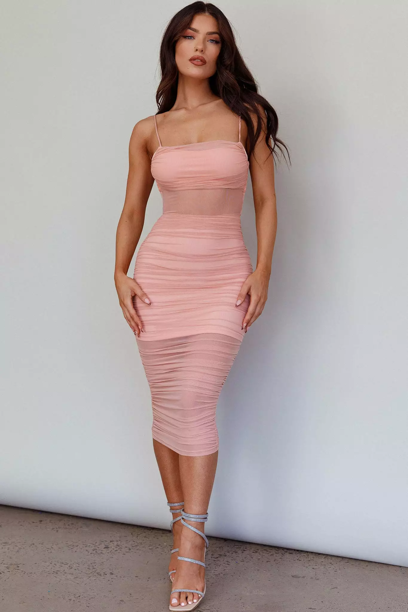 Turn up the heat in our hot Saturday Nights midi dress. We are majorly crushing on that strappy, lace up back and ruched mesh! Perfect for a girls’ night out teamed with clear heels and a tote for a look we are loving.
