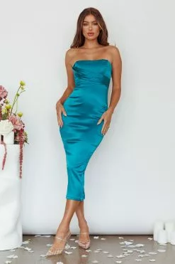 Make a grand entrance in our gorgeous Still Mine midi dress. Featuring a strapless style and on-trend green hue, it’s perfect for a wedding or special occasion. Team it with silver heels and a clutch for a look we are loving.