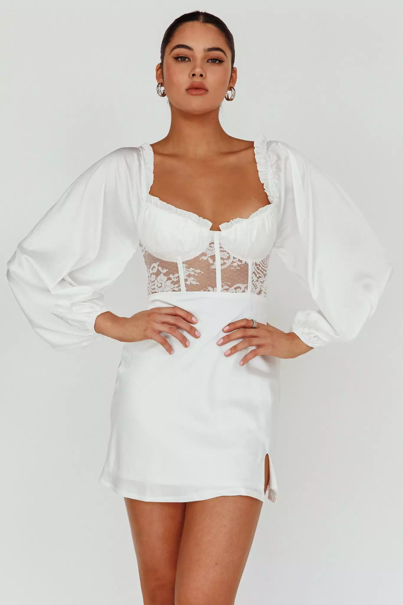 Turn heads in our romantic Trophy dress. We are obsessed with that lace bodice with boning detail. Perfect for a bachelorette or birthday soiree. Team it with nude heels and a satin clutch for a gorgeous look we are loving.