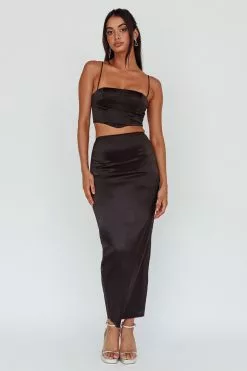 You’ll go straight to the best-dressed list in our super cute Zeina midi skirt. We are in love with its soft, satin fabric and on-trend hue! Perfect for a girls’ night out teamed with its matching crop top and strappy heels.