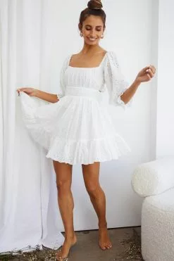 - White eyelet embroidery dress