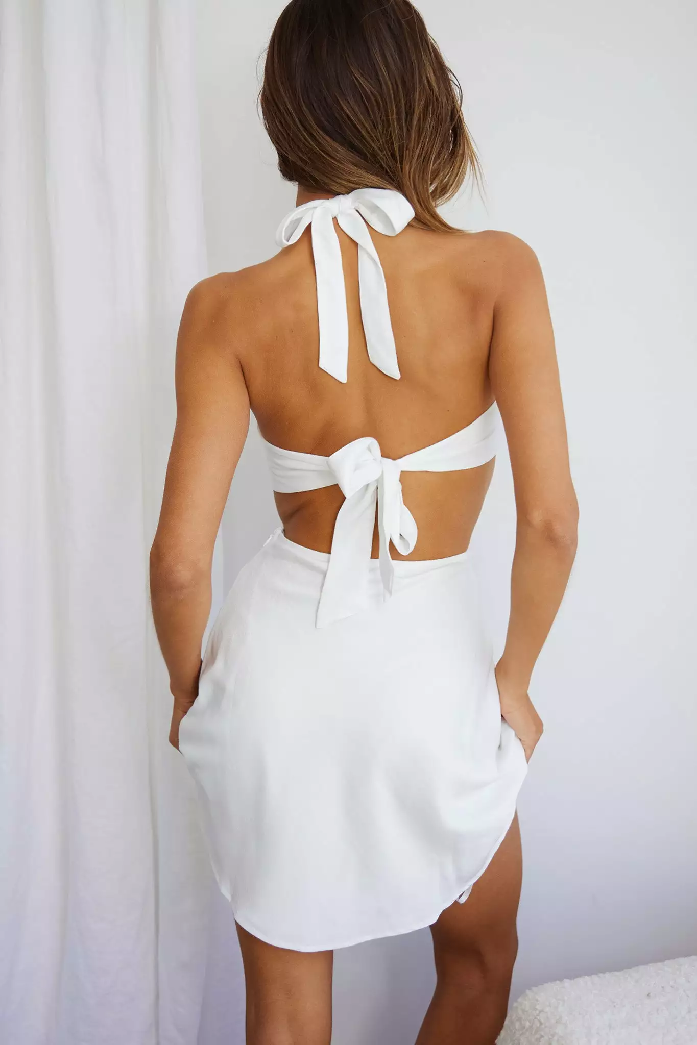 - White satin dress