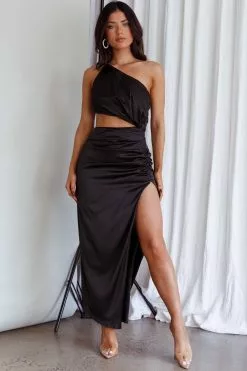 Selfie Leslie Alessa One-Shoulder Midi Dress Black