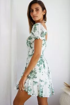 - White/olive floral mini dress