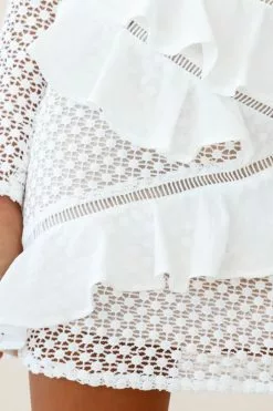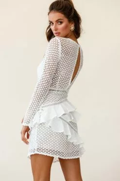 Selfie Leslie Aramis Long Sleeve Lace & Ruffle Detail Dress White