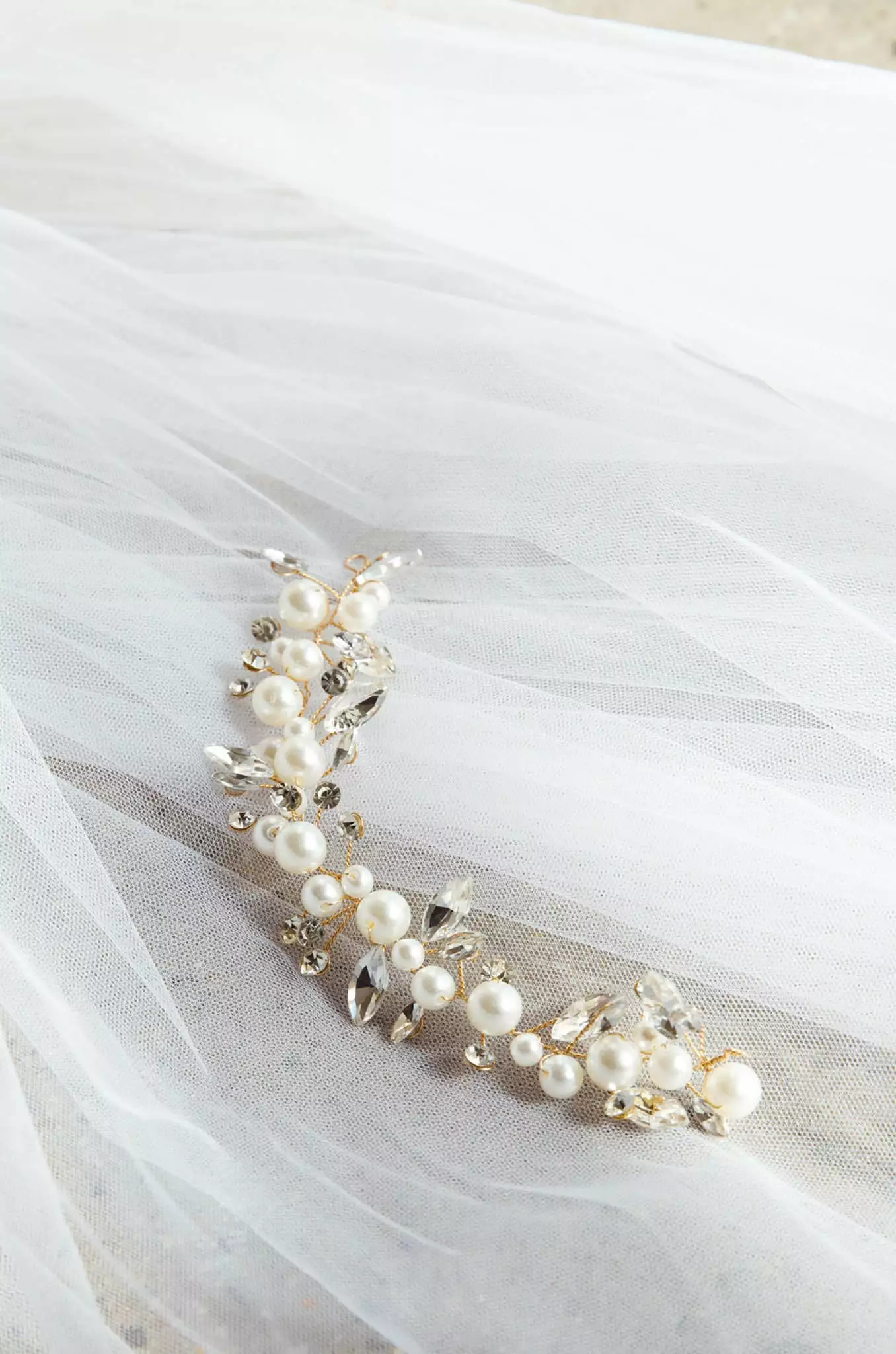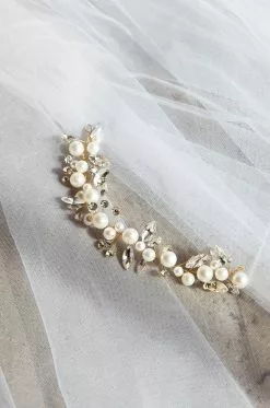- Crystal and pearl embellished
