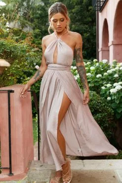 You’ll look like a Greek goddess in our stunning Athena dress featuring sexy high splits at the front, halterneck, and strappy, open back. We are loving the silky fabric that floats with you as you move. Perfect for your next special occasion or prom. Team it with nude, strappy heels and gold jewelry and watch heads turn as you strut by.