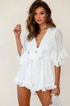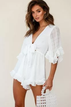 Steal the show in our super cute Athira romper. Perfect for a flirty date with that boy you’ve had your eye on. We are obsessed with those short, flared sleeves and tied bust! Team it with mules and hoops earrings and get ready for a second date!
