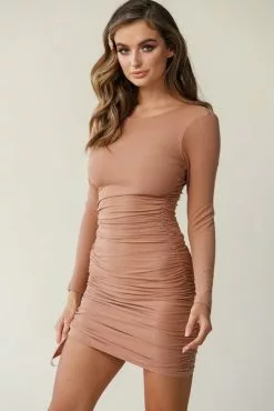 Stop traffic in our sexy Austin dress. Featuring stretchy, ribbed knit fabric throughout, a crew neckline, long sleeves and ruching up the sides, it hugs you in all the right places. Perfect for a flirty first date teamed with knee-high boots and a coat.
