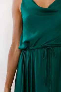 Selfie Leslie Ava Cowl Neck Drawstring Midi Dress Forest Green