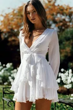 Selfie Leslie Believe Me Long Sleeve Surplice Neckline Dress White