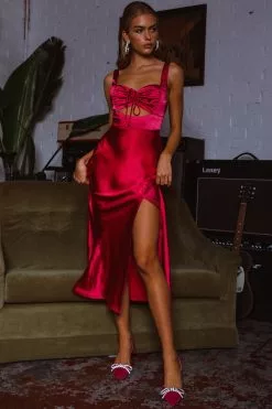 Selfie Leslie Belle Epoque Drawstring Bust Midi Dress Hot Pink