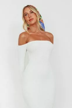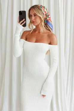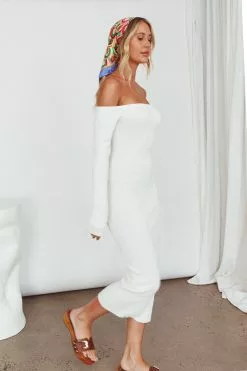 Turn heads in our super cute Briar midi dress. Featuring an off-shoulder style and soft, knit fabric. Perfect for a flirty date night teamed with mules and a tote for a look that’ll sweep them off their feet.