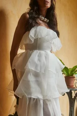 Make your grand entrance in our stunning Oceana maxi dress. Featuring layered, wide ruffles, we’re obsessed! Perfect for your big day teamed with white pumps and a pearl necklace for an unforgettable look.