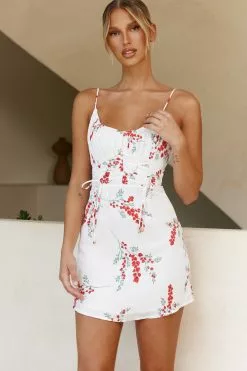 Selfie Leslie Bright Side Spaghetti Strap Ruched Detail Dress Floral Print White