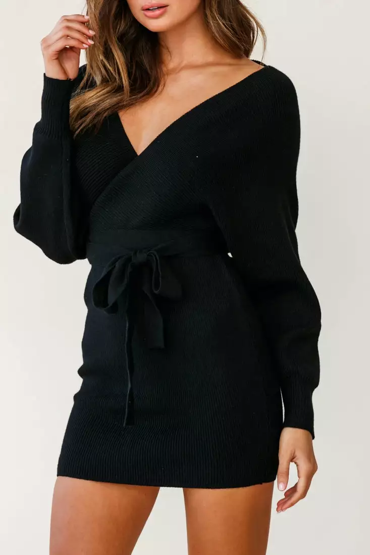 Snag yourself a cutie in our cozy but sexy Cameo dress. Featuring soft, knit fabric, long batwing sleeves, flattering crossover neckline and belted waist tie. We are loving the crossover style that’s carried through to the back to show just a hint of skin. Perfect for snuggling up by the fire with a glass of wine, post romantic dinner date. Team it with black suede knee high boots and a peacoat for a chic look we are loving.