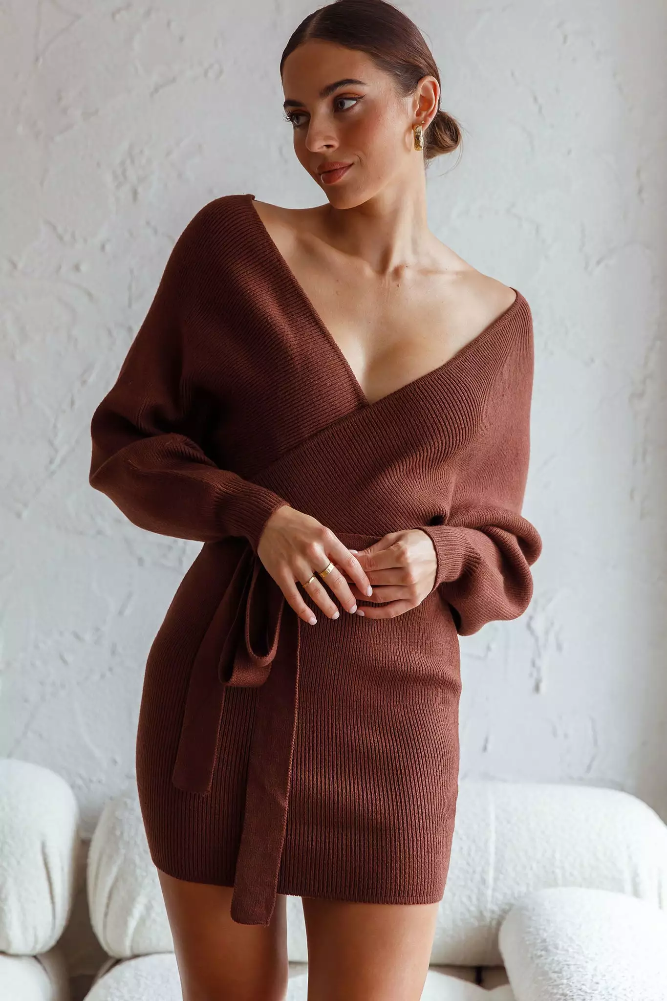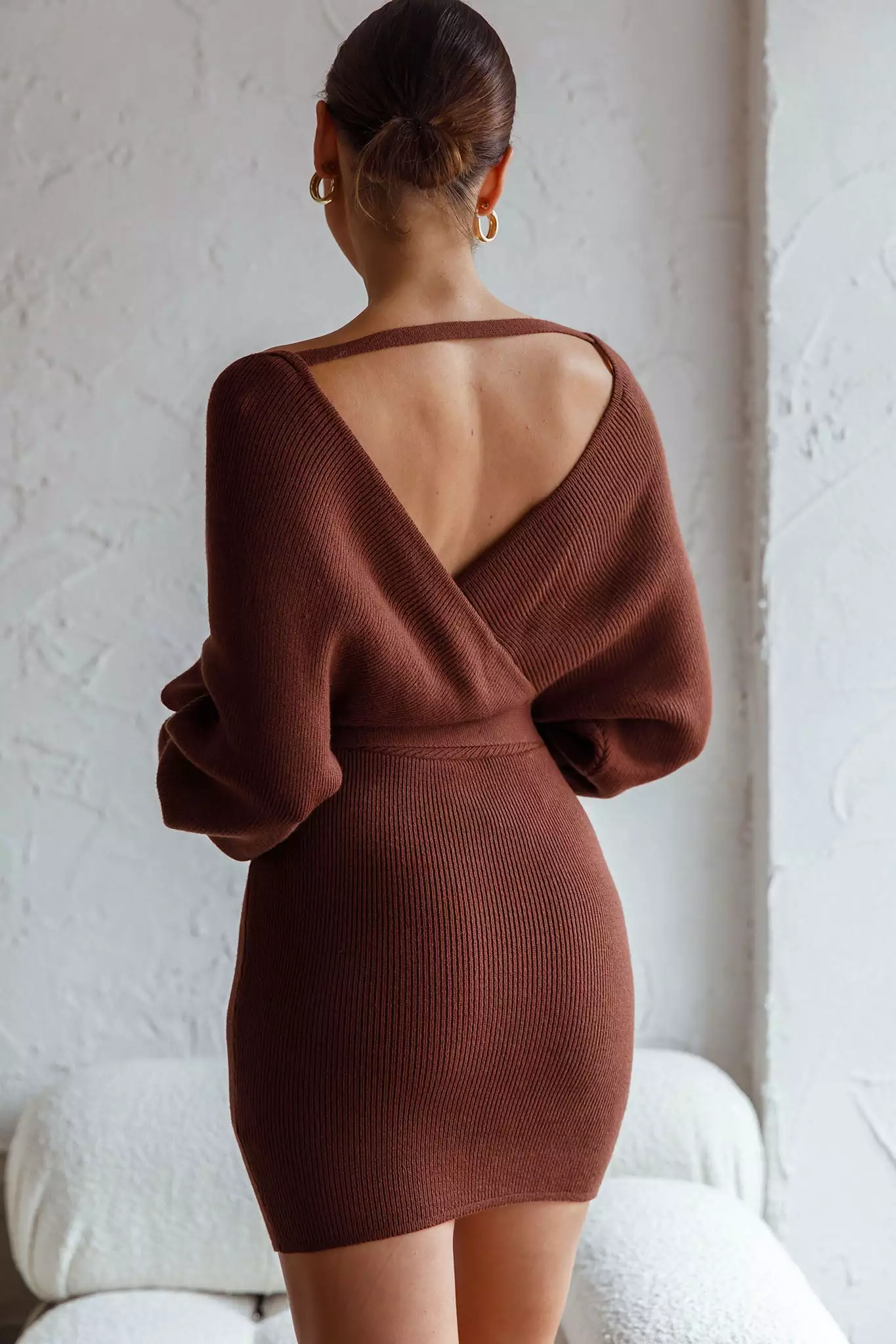 Selfie Leslie Cameo Long Batwing Sleeve Knit Mini Dress Chocolate