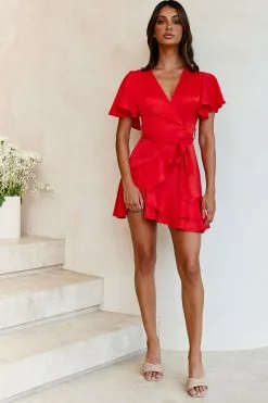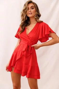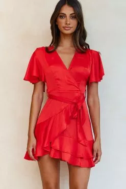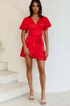 Selfie Leslie Cami Angel Sleeve Faux Wrap Dress Red