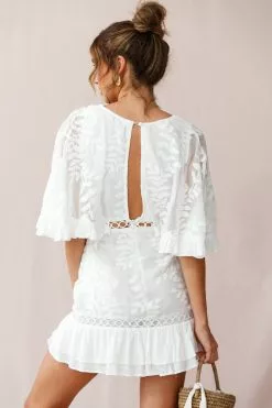 One of our most popular styles, the Caspar dress is elegant and versatile, easily going from work to sunset cocktails with the gals after work. We love its batwing style sleeves, with pretty ruffle trim and eyelet embroidery around the waist that’s also repeated around the skirt’s hem. Pair it with nude heels and fine gold jewelry for a feminine-chic look we are loving.