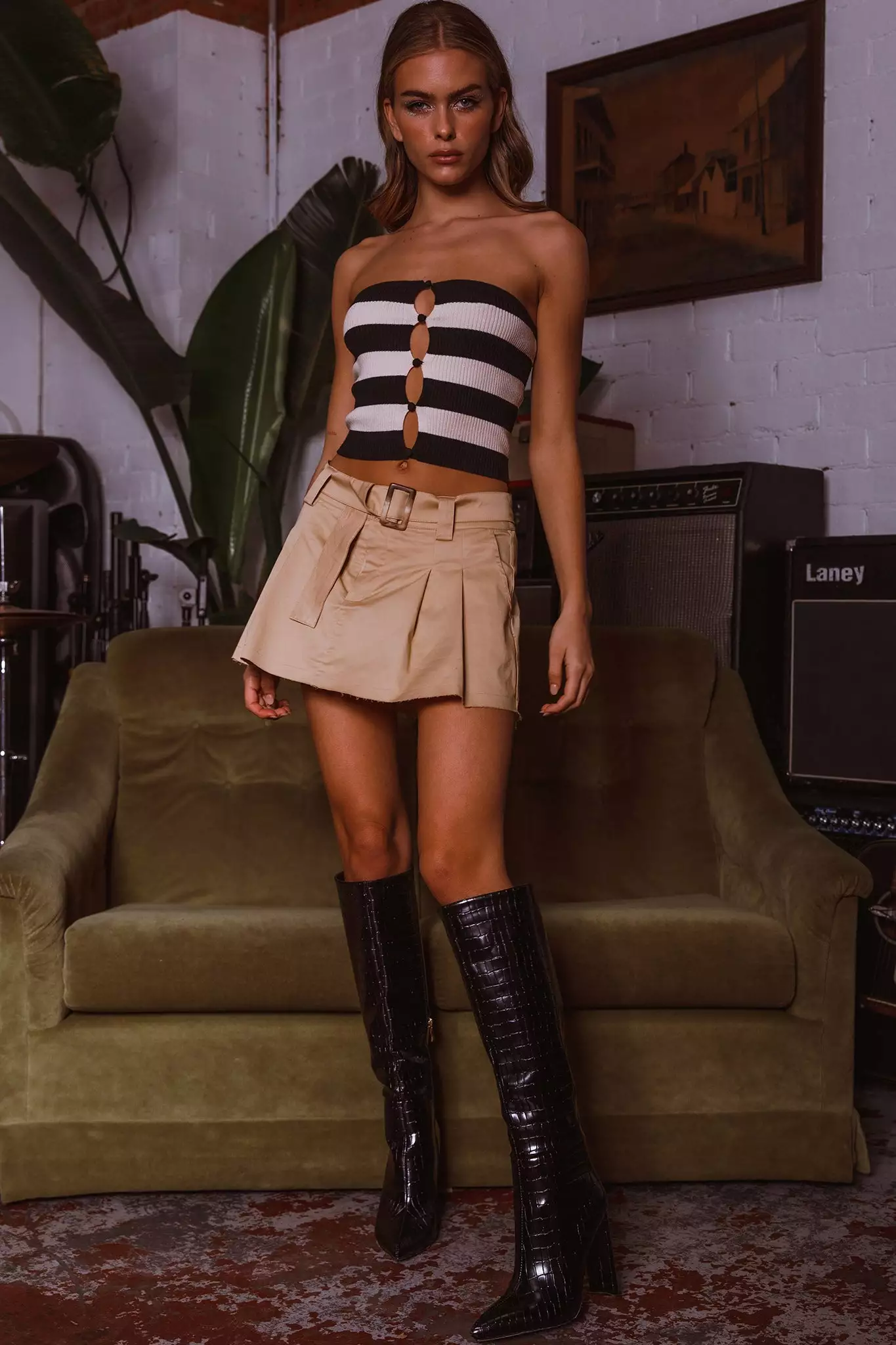 Hey there, cutie! You’re looking hot in our Coming Through tube top. Featuring a knit fabric and button detail down the front. It’s perfect for a girls’ night out teamed with a low-rise mini skirt for an on-trend Y2K look.