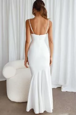 Selfie Leslie Darlene Front Split Flounce Hem Maxi Dress White