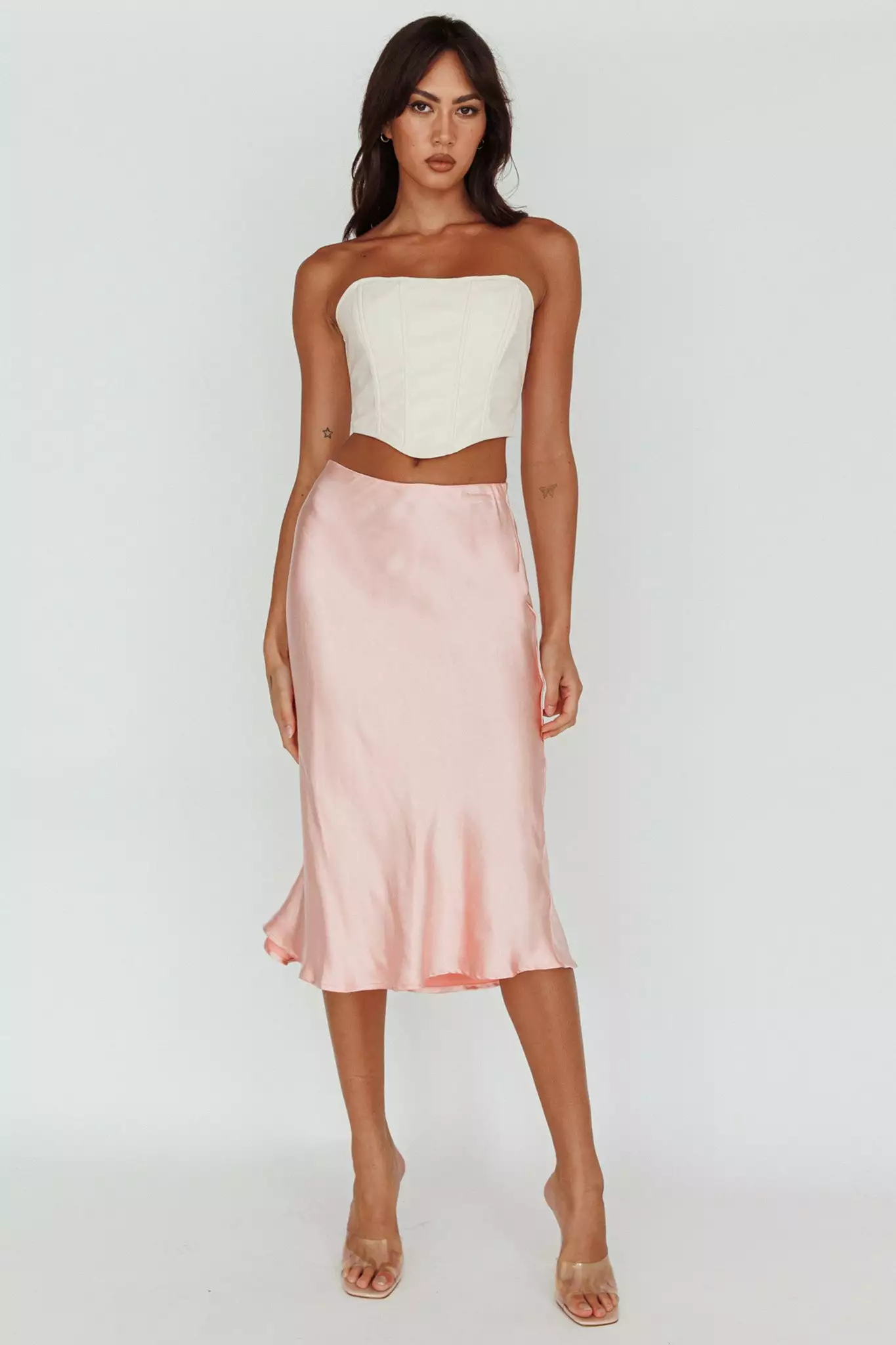 Make a statement in our gorgeous Daze midi skirt. Perfect for going from desk to dinner! We are in love with its versatility and soft, satin fabric. Go casual and pair it with a vintage tee and sneakers or dress it up with a blouse and pumps for your 9 to 5.
