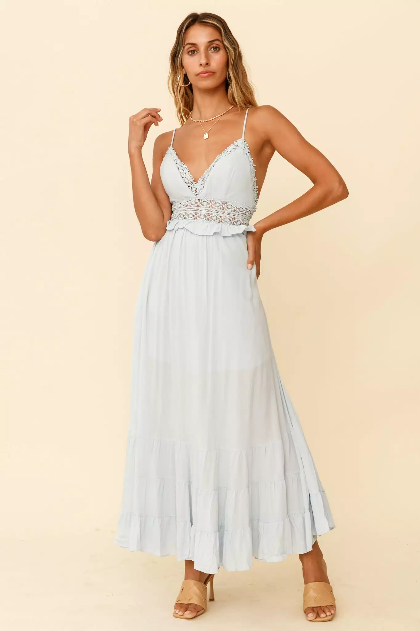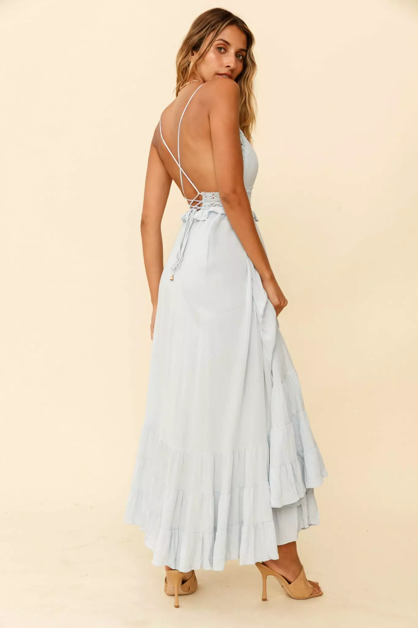 Selfie Leslie Desert Rose Crochet Tie-Up Back Maxi Dress Ice Blue