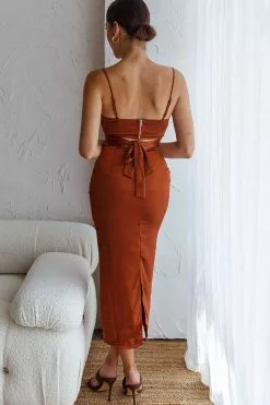 Jaws will drop when you walk by in our Desert Nights midi skirt. We are majorly crushing on that adjustable drawstring ruching in the front and stunning satin fabric throughout. Perfect for romantic date nights teamed with its matching crop top and perspex mules.
