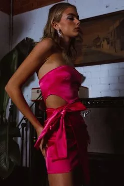 Make them stop and stare in our gorgeous Eyes For You mini dress. We are obsessed with its stunning satin fabric and chic, side tie at the waist. Wear it to homecoming or a birthday celebration teamed with bright platform heels and a mini purse.