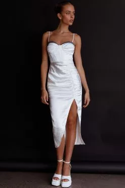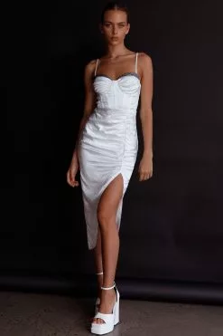 Steal the show in our stunning Fantasy dress. We are obsessed with its structured bodice and ruching detail in the body. Perfect for any occasion where all the attention should be on you! Team it with diamante heels and a clutch for a look we’re in love with.