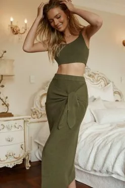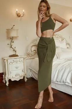 Get ready for some double takes when you strut by in our super cute Fay crop top. Featuring thick straps and a soft knit fabric, it’s perfect for weekend getaways teamed with its chic matching skirt and your fave tan mules.