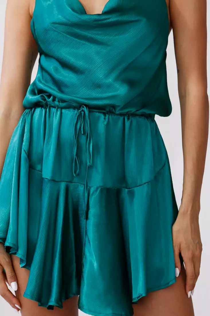 This dress will make you feel like grabbing your besties, a clutch and your favorite heels, and hitting the club for a girls night out. Featuring a flattering cowl neckline, spaghetti straps and adjustable drawstring around the waist for the perfect fit. We are loving the soft, satin-like fabric and fluted hem, perfect for dancing the night away. Team it with nude heels and a cocktail!