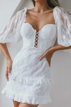 Turn heads in our gorgeous Hemingway dress. Featuring a floral lace throughout and a padded bust. It’s feminine-chic and perfect for a dreamy outdoor event or graduation celebration. Team it with perspex heels and a small purse and get ready to be flooded with compliments.