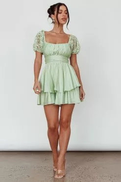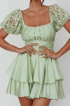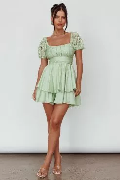 Selfie Leslie Hold My Halo Lace Sleeve Romper Sage