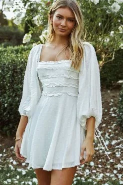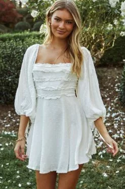 Selfie Leslie Illia Three-Quarter Balloon Sleeve Frill Bodice Dress White