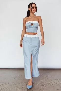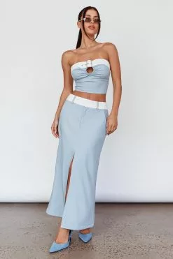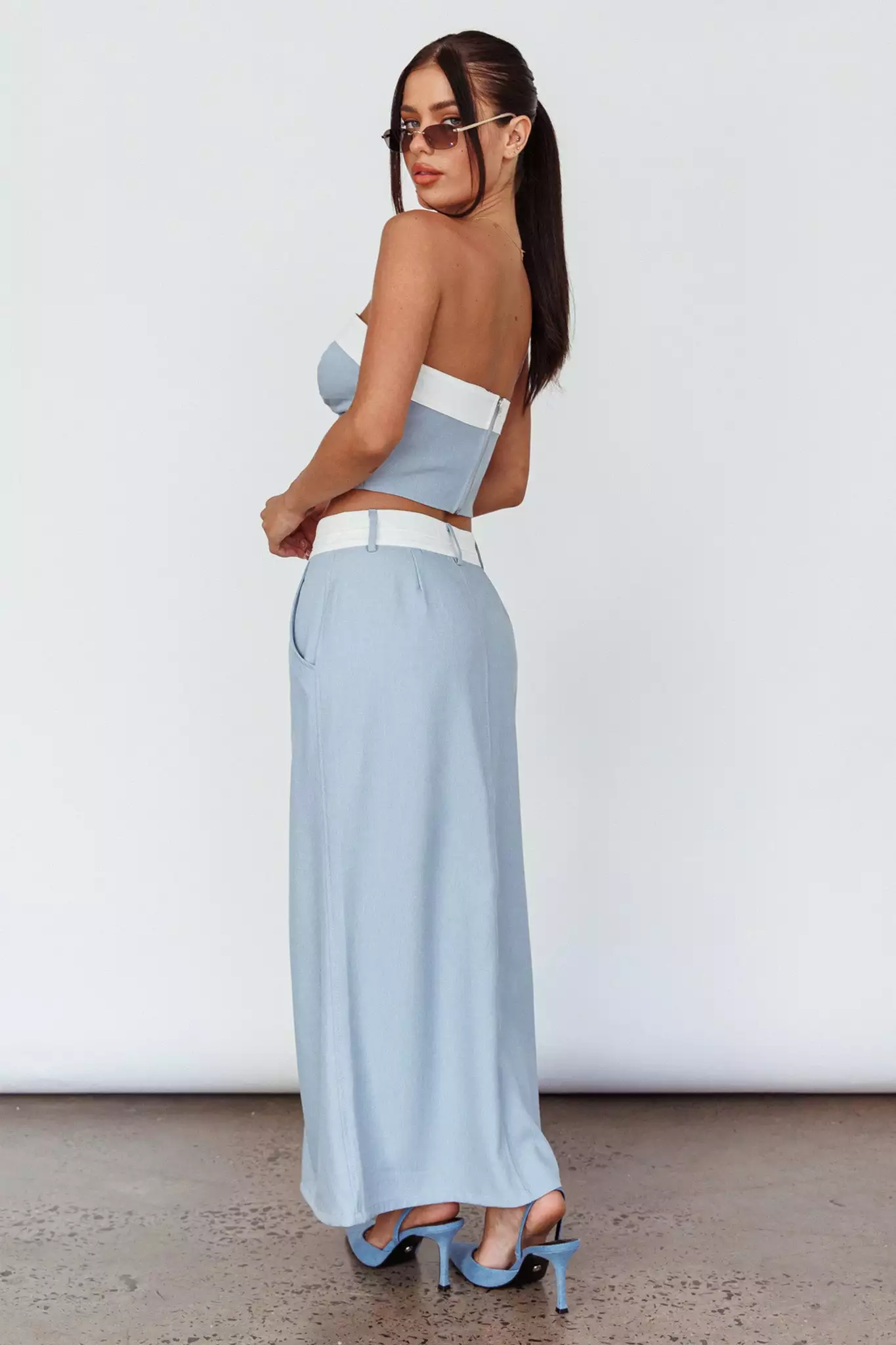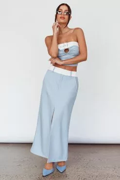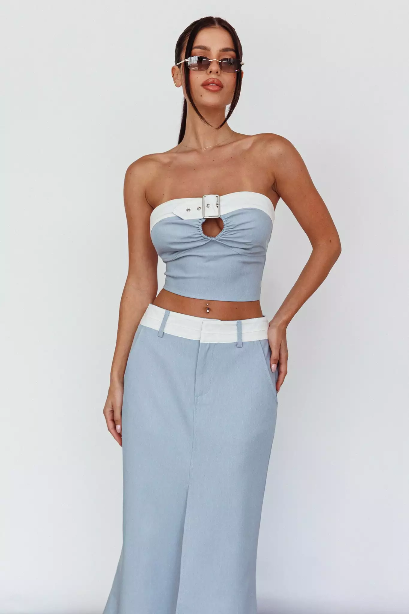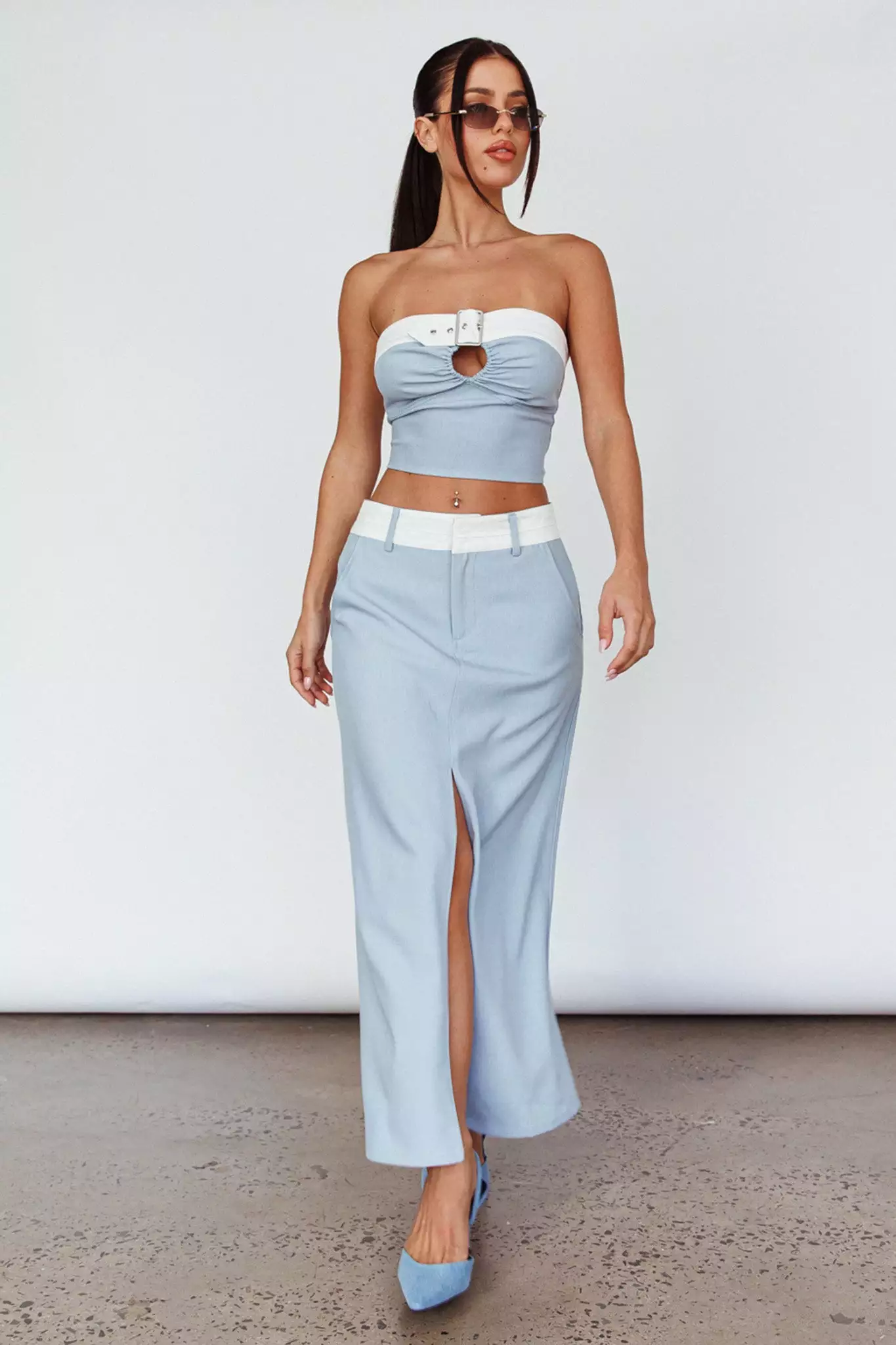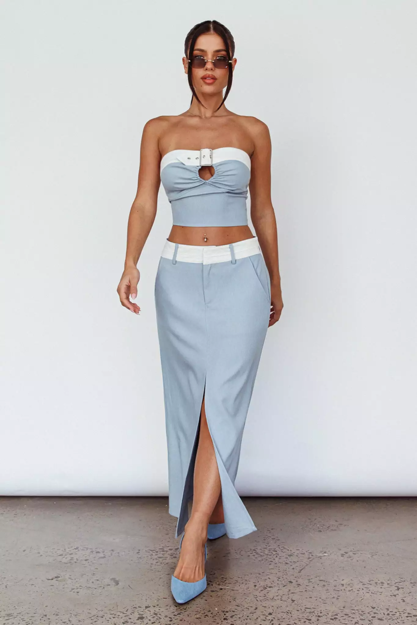 Channel your inner It Girl in our In My Era midi skirt. We are obsessed with its low rise cut and business suit look with its belt loops and pockets. Perfect for your 9-5 or a date night teamed with its matching top a tote and pointed kitten heels.